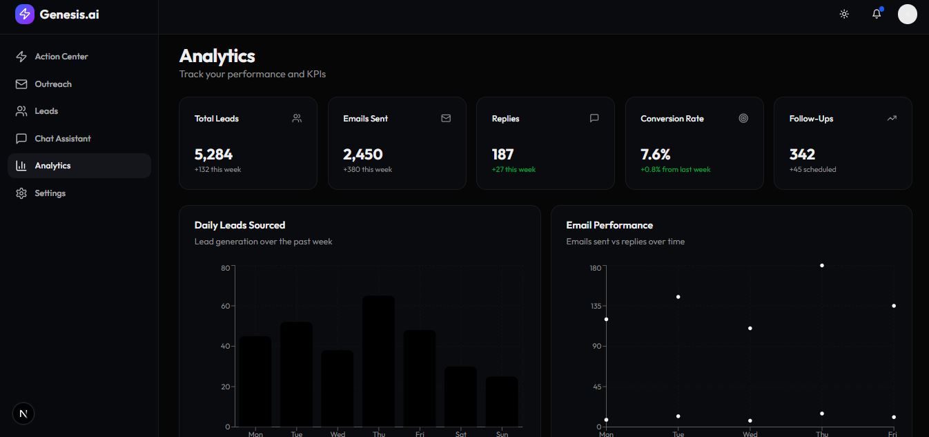 Before Genesis, Ken relied on manual prospecting and irregular outreach — which made scaling impossible. Our system automated his lead flow and helped him maintain consistent client acquisition.
